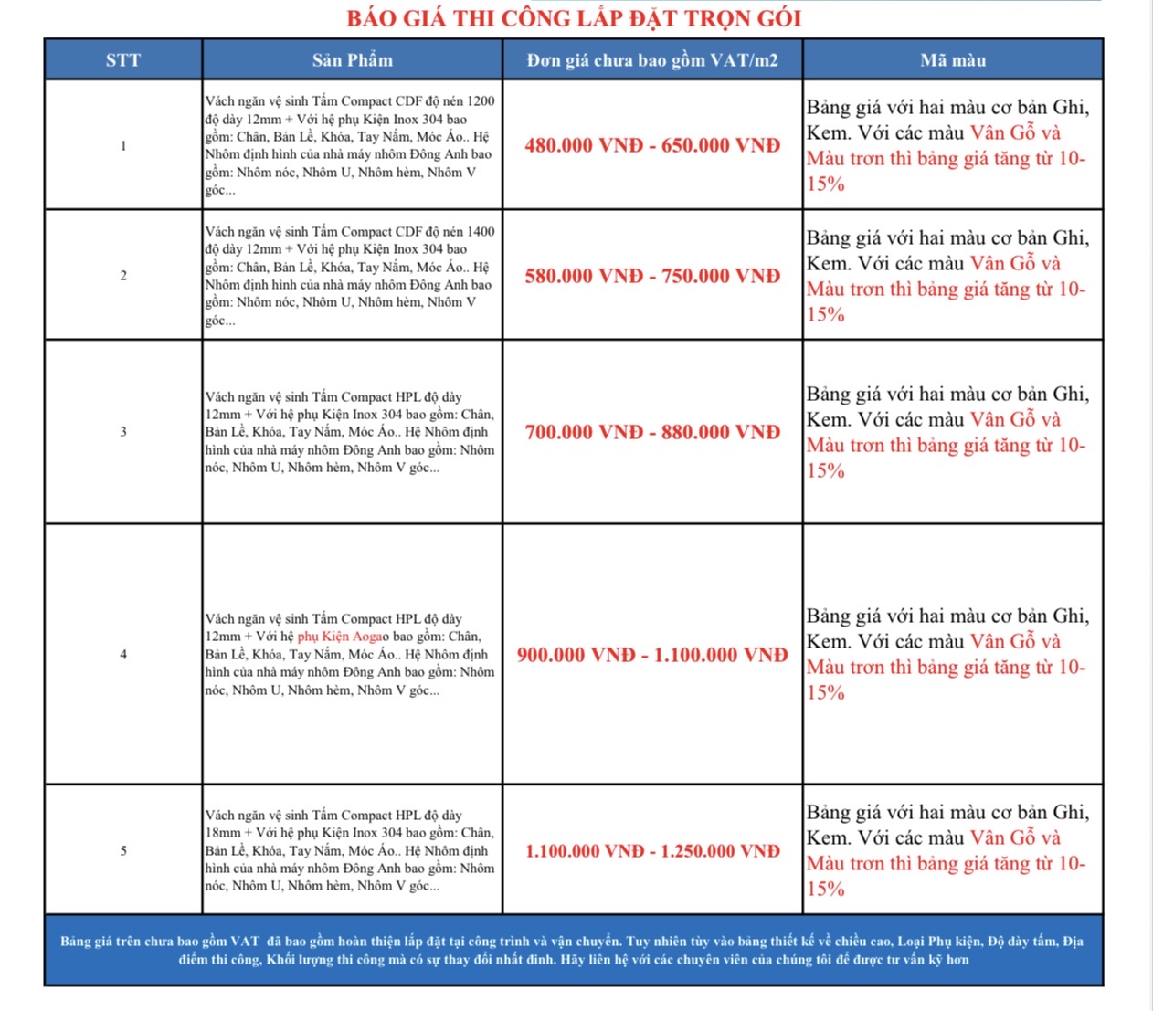 BÁO GIÁ THI CÔNG VÁCH NGĂN VỆ SINH COMPACT HPL
