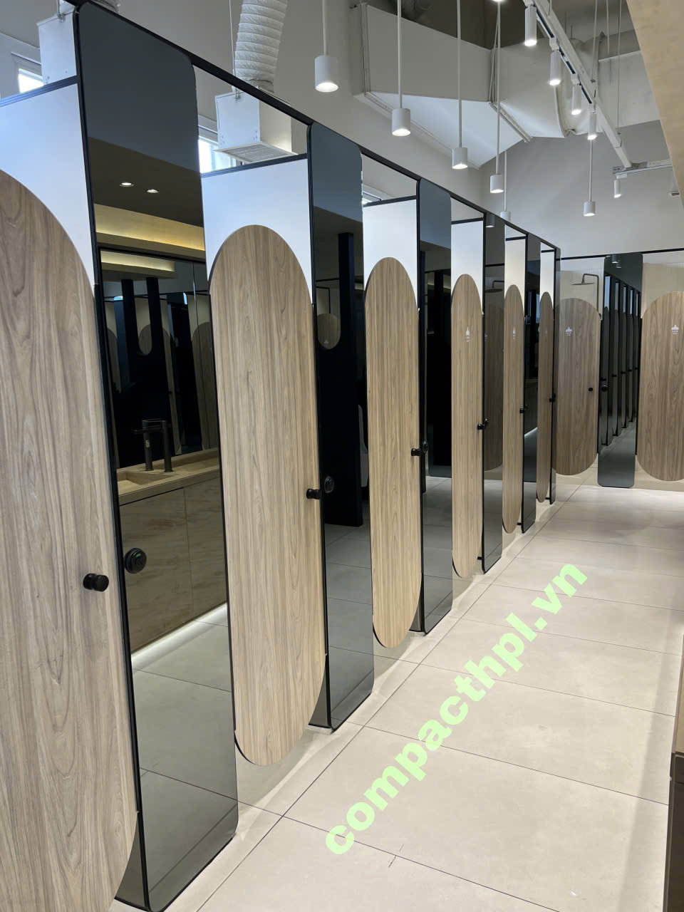 - Vật liệu thi công: Tấm vách ngăn nhà vệ sinh Compact HPL.
